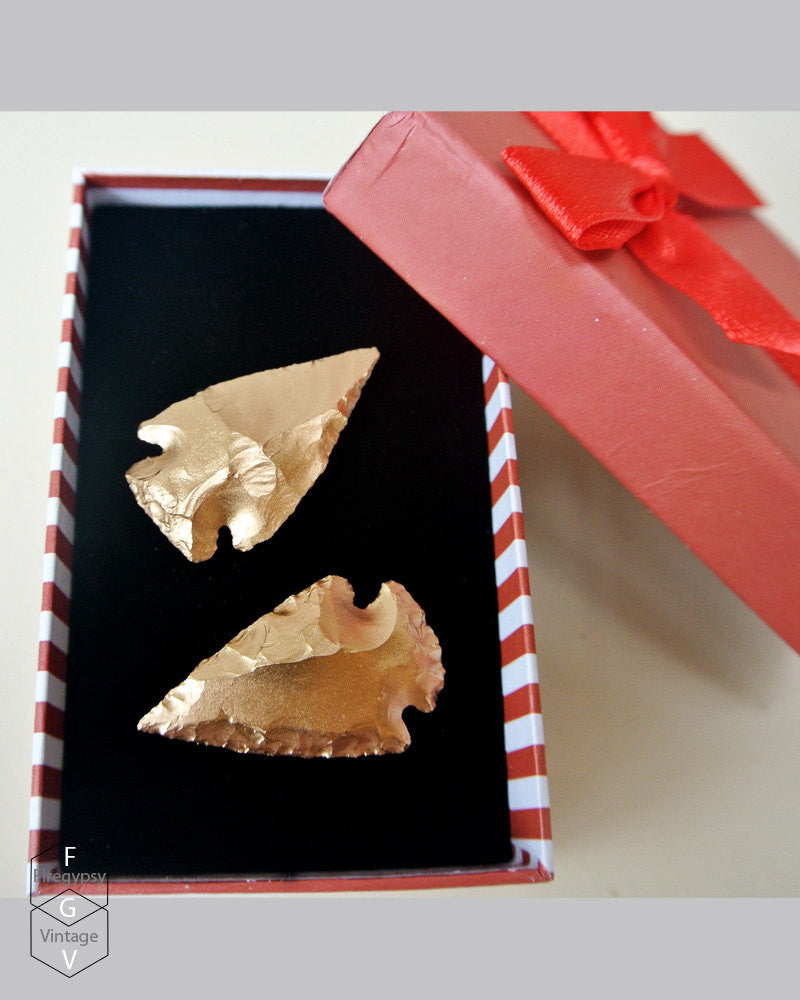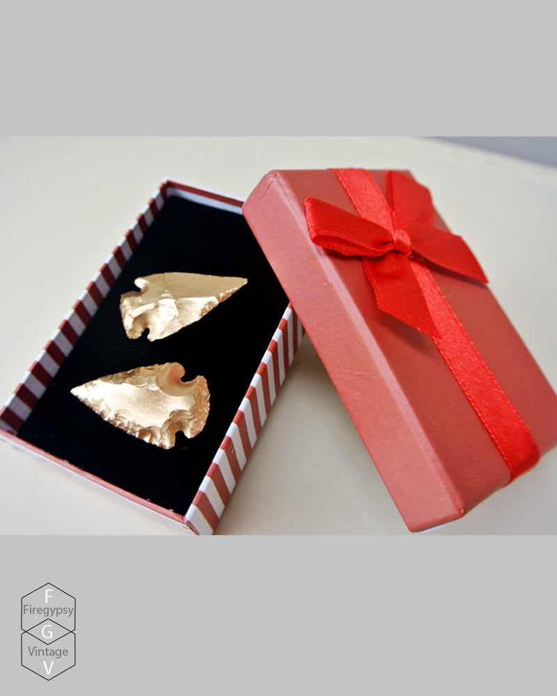 Material: real flint arrowheads, gold hand painted, silver tone studs
