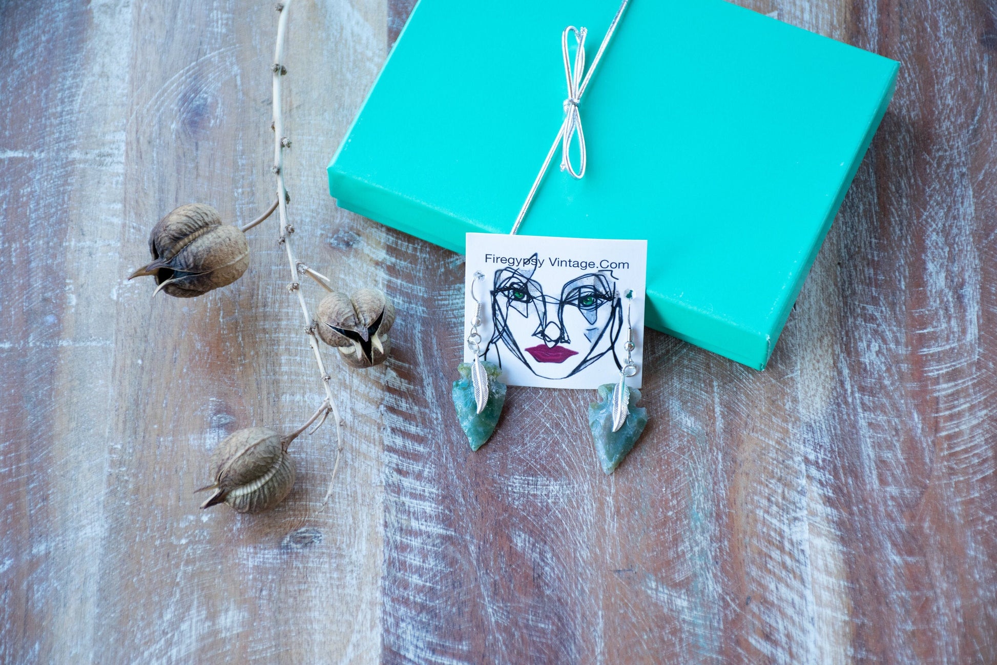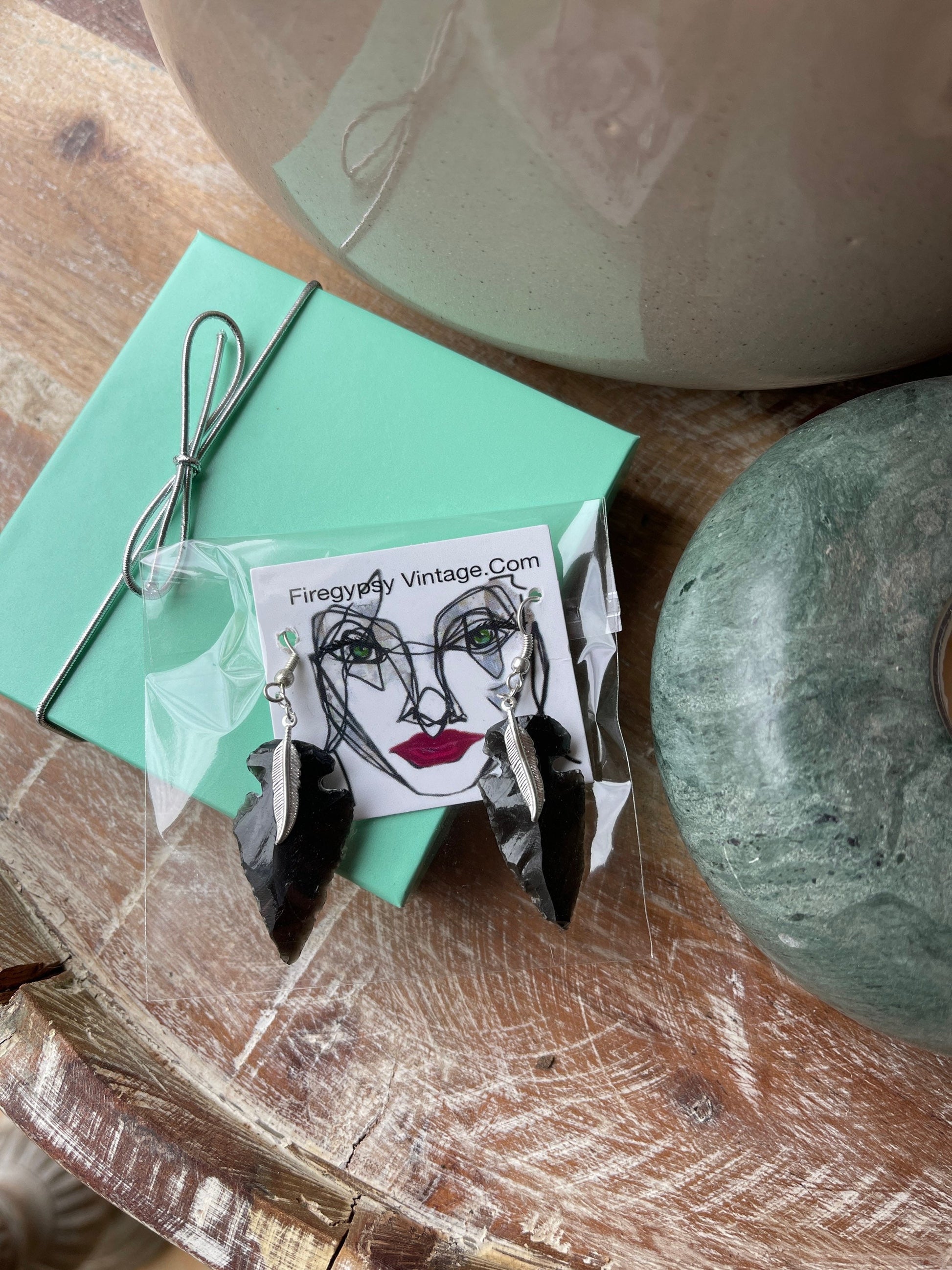 In your Flint Stone color choice and your metal choice of either, antique copper feather detail, antique brass feather detail, silver feather detail, or gold tone feather detail. Or studs with surgical steel posts.✂- - -Measurements- - -Total Length: 1"(arrowheads) dangle earring size hangs at 2 inches total length Width: .5 inch Material: real flint arrowheads, your metal choice, each piece has subtle differences, we try to match color and size closely. Style: either post/studs or dangle/drop Color: your choiceMetal: your choice of either gold, silver, brass, copper(dangle style with feather) or studs with surgical steel post