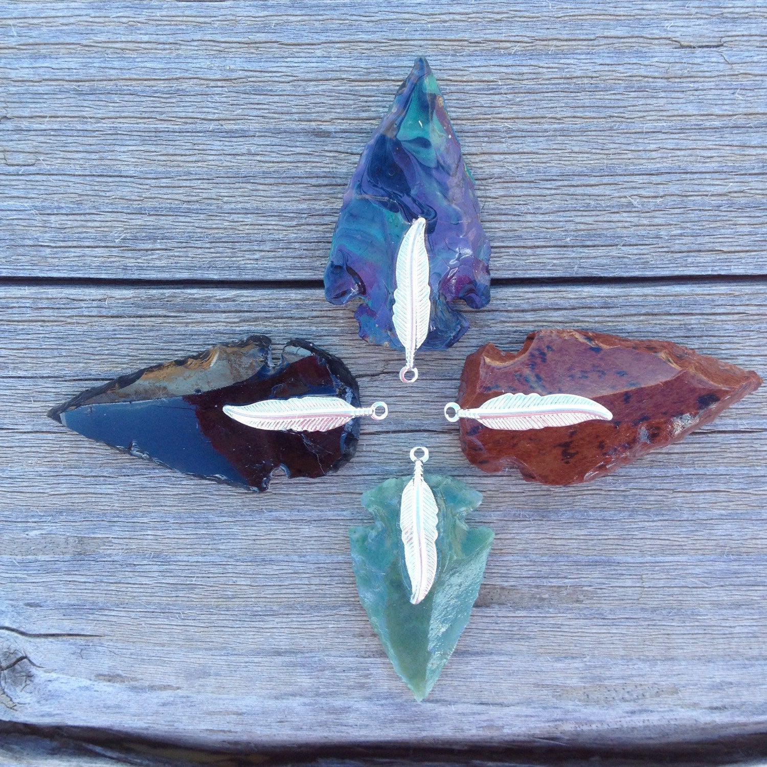 Necklace fall/length: 16" / 41cm (or your choice), each arrowhead is about 1x1" / 3cm
