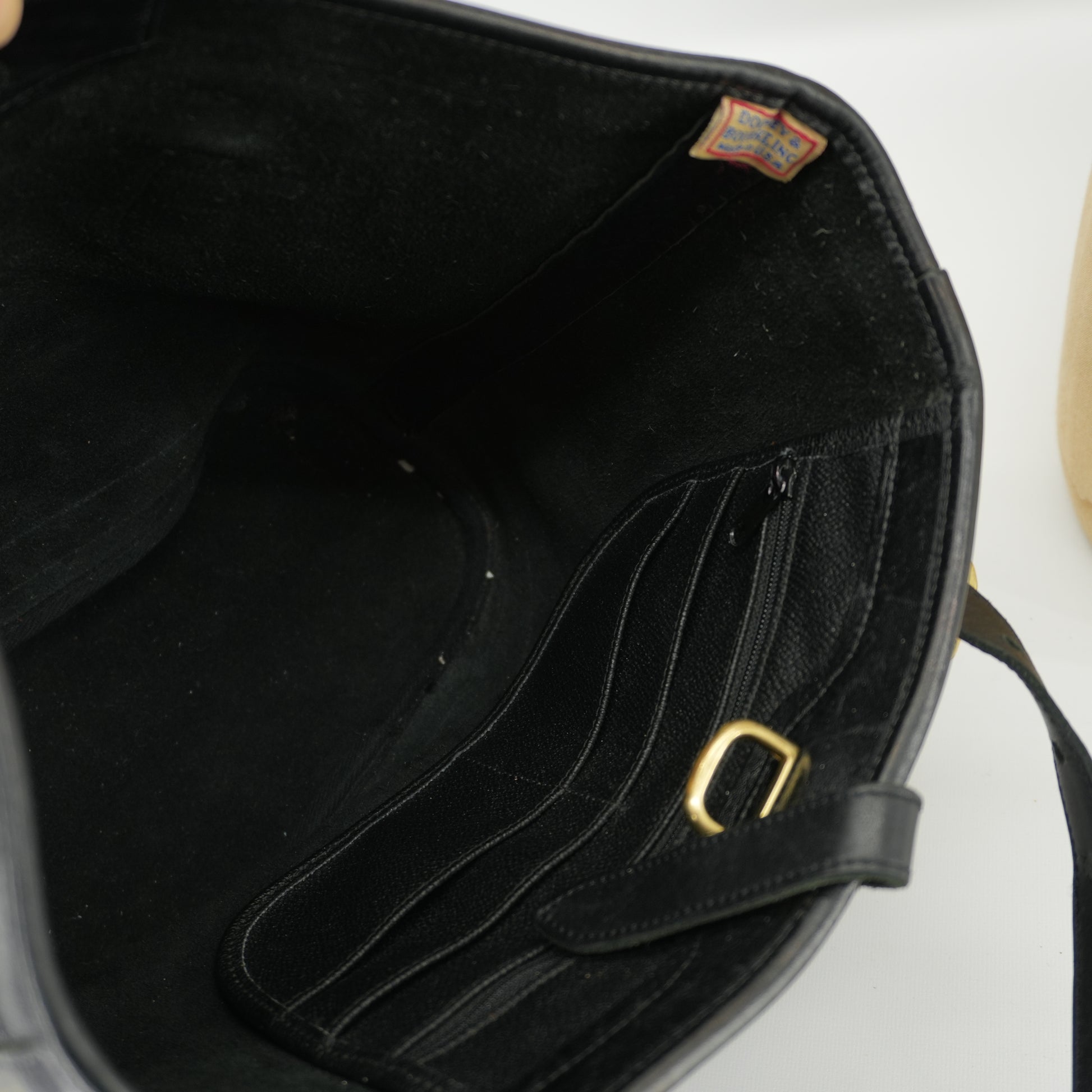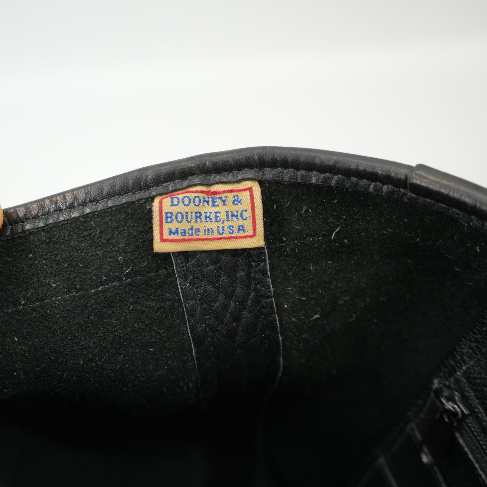 Discover timeless style with this vintage Dooney & Bourke All-Weather Leather shoulder bag. Crafted from durable black and tan leather, this iconic bag features the signature circular Dooney & Bourke logo. Perfect for everyday use, its classic design offers both functionality and a touch of retro elegance. A must-have for any vintage handbag collector.