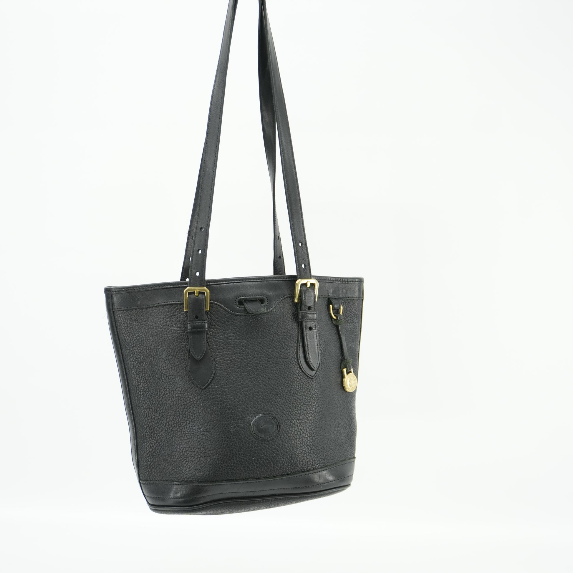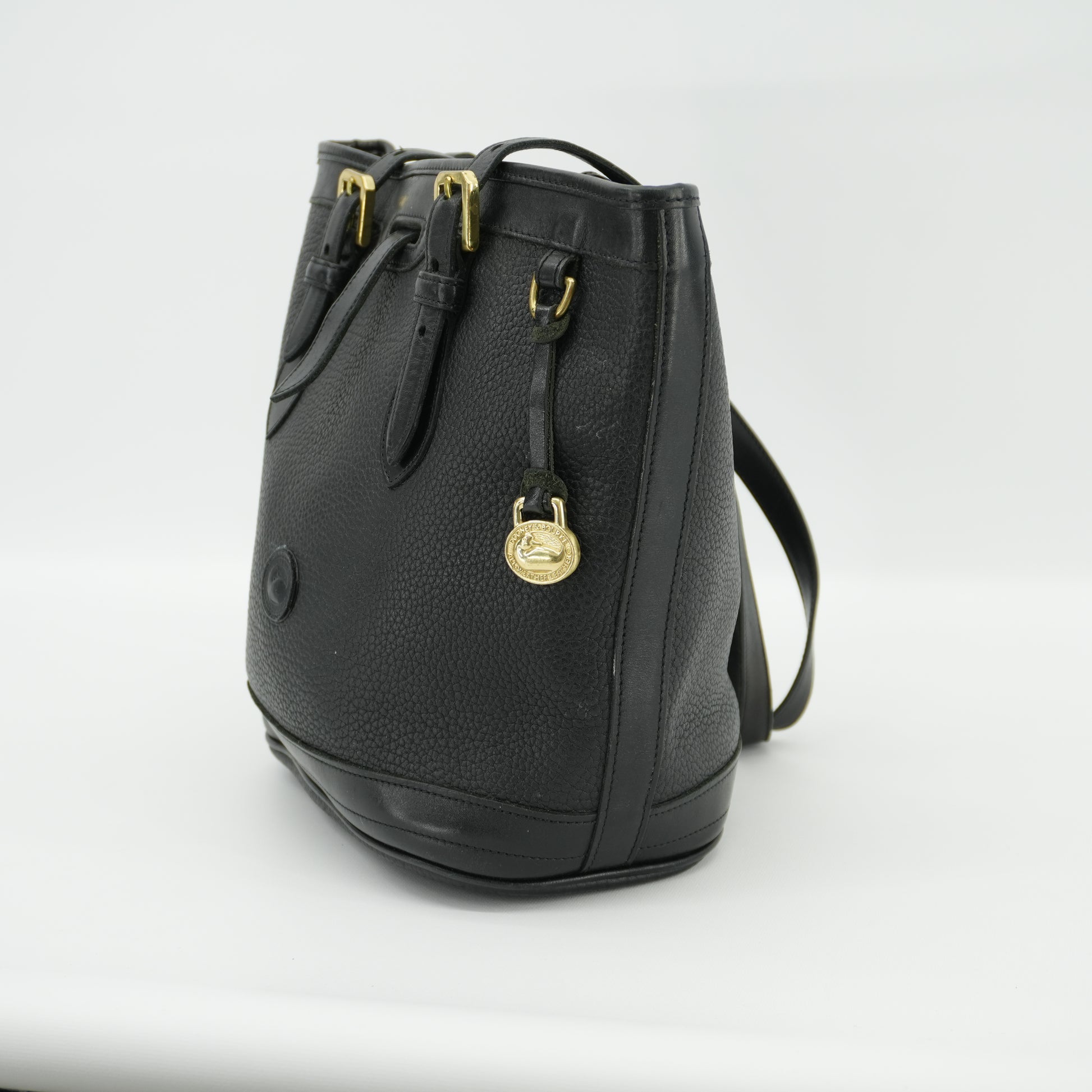 Dooney & Bourke Vintage Black Bucket Tote 90s Purse All Weather Leather Shoulder Bag
