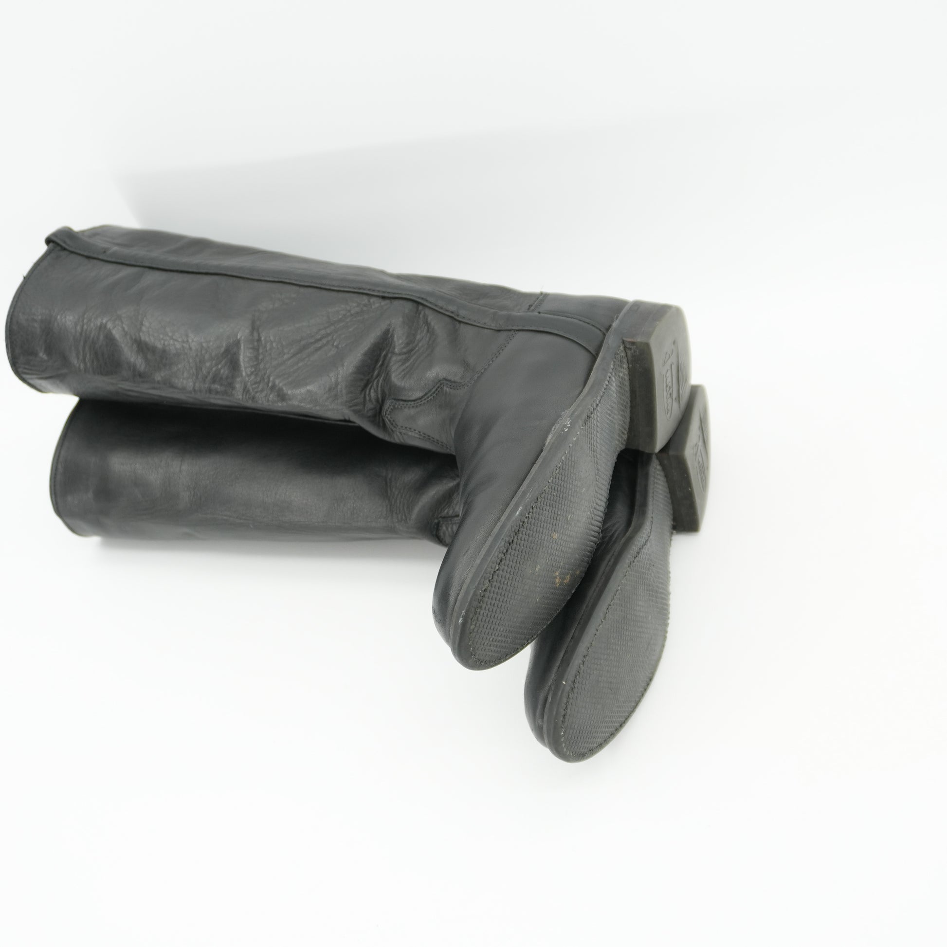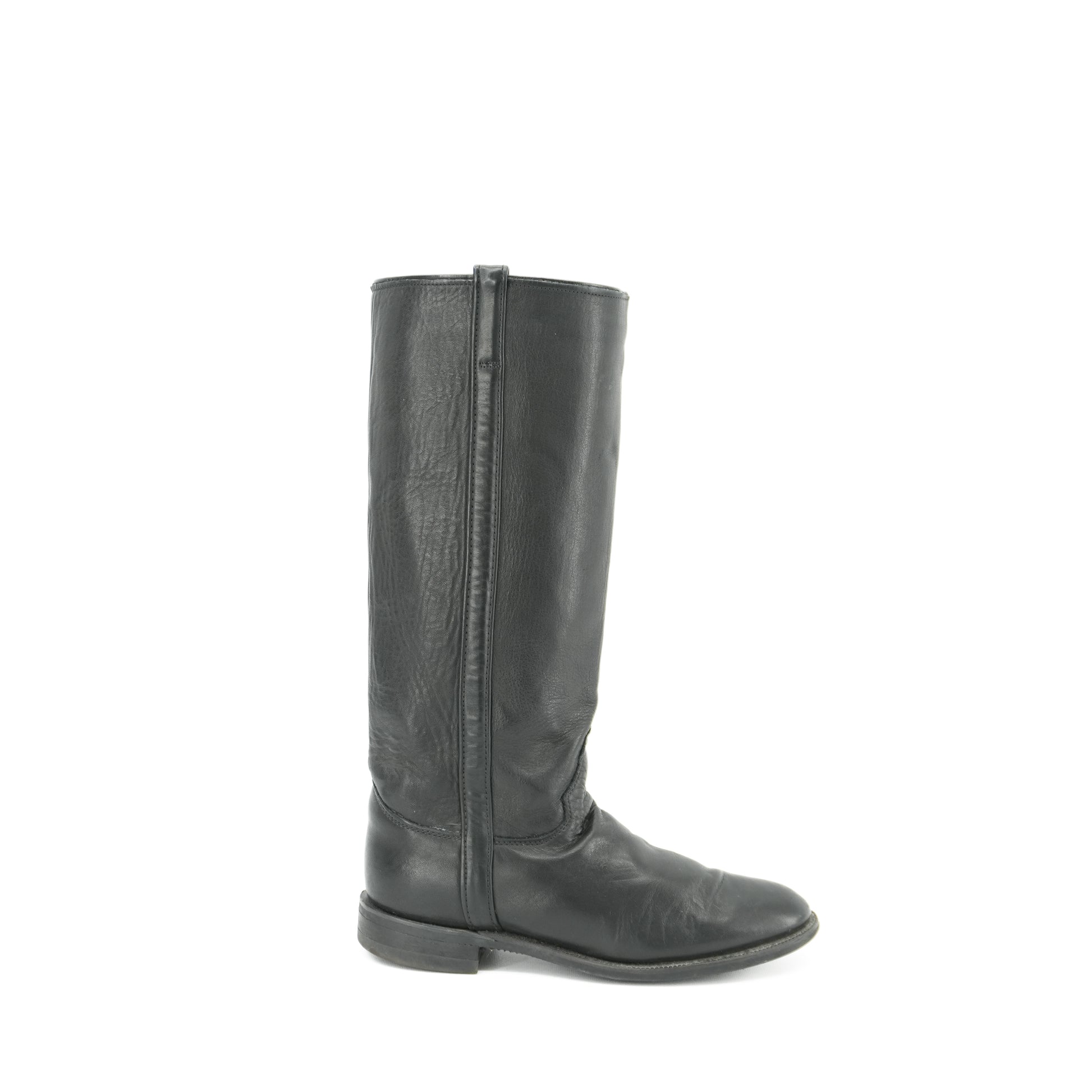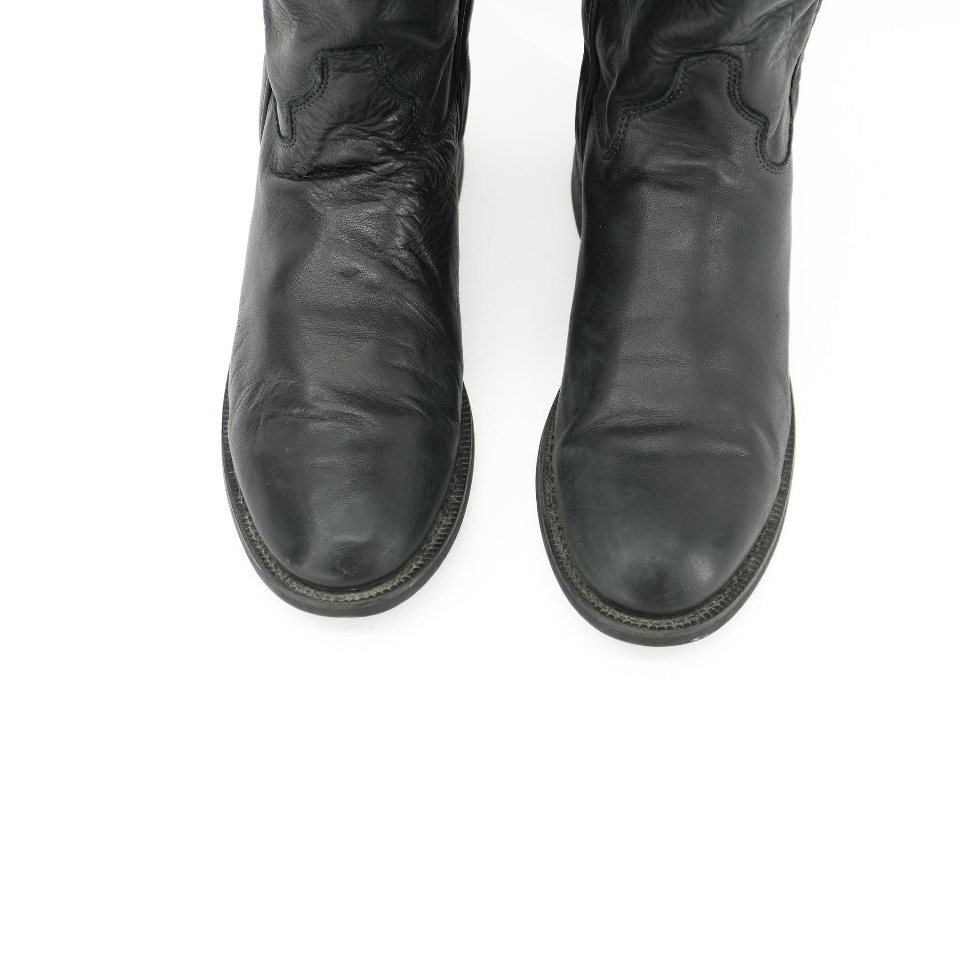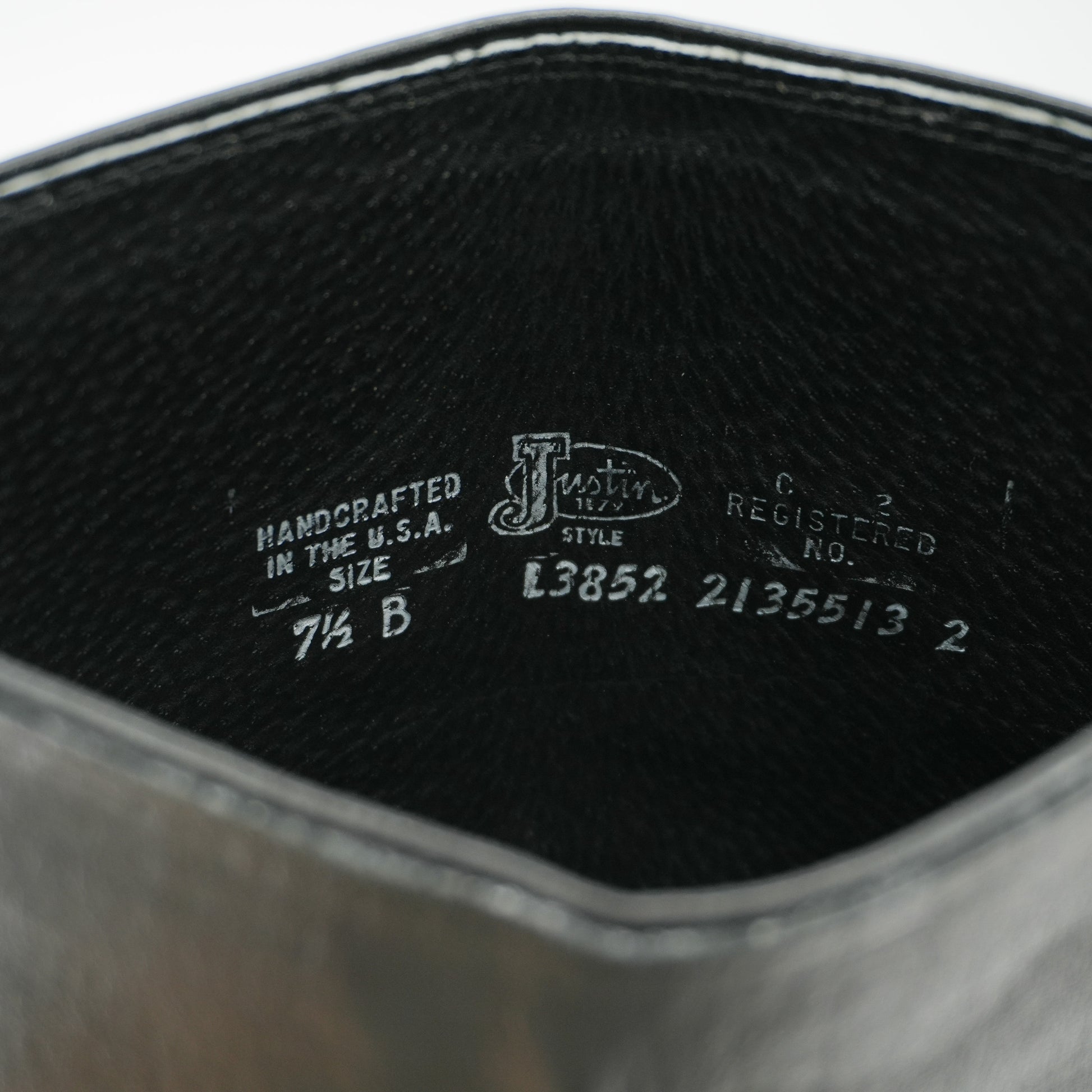 Black Cowboy Boots Size 7.5 1970s Rare Tall Justin Vintage Black Leather Riding boots