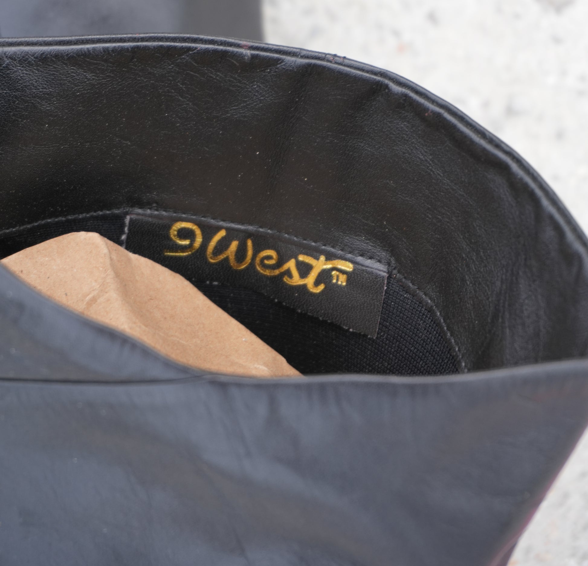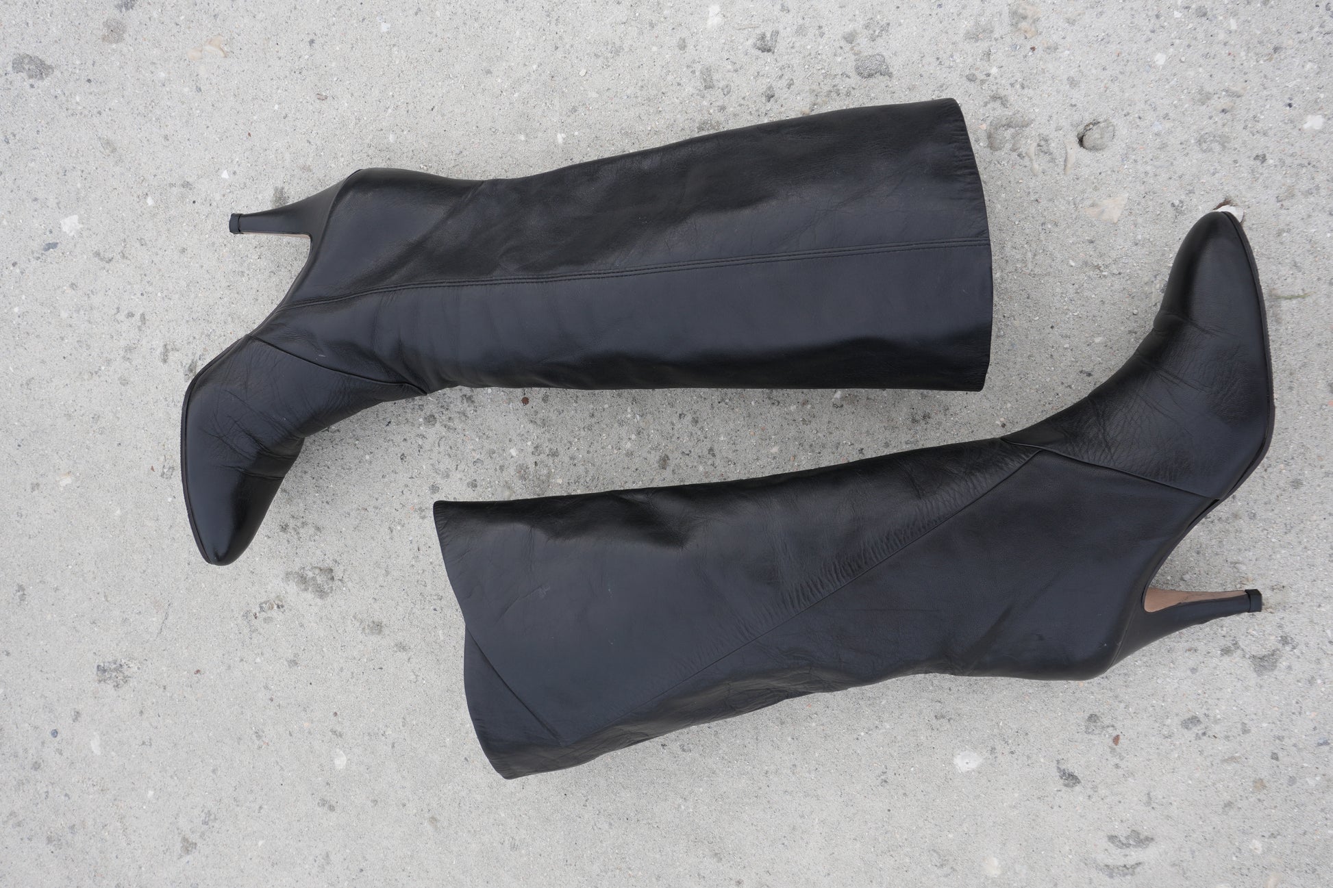 Tall Boots Size 9 Vintage 80s Tall Black Leather Retro Boots Sz. 9