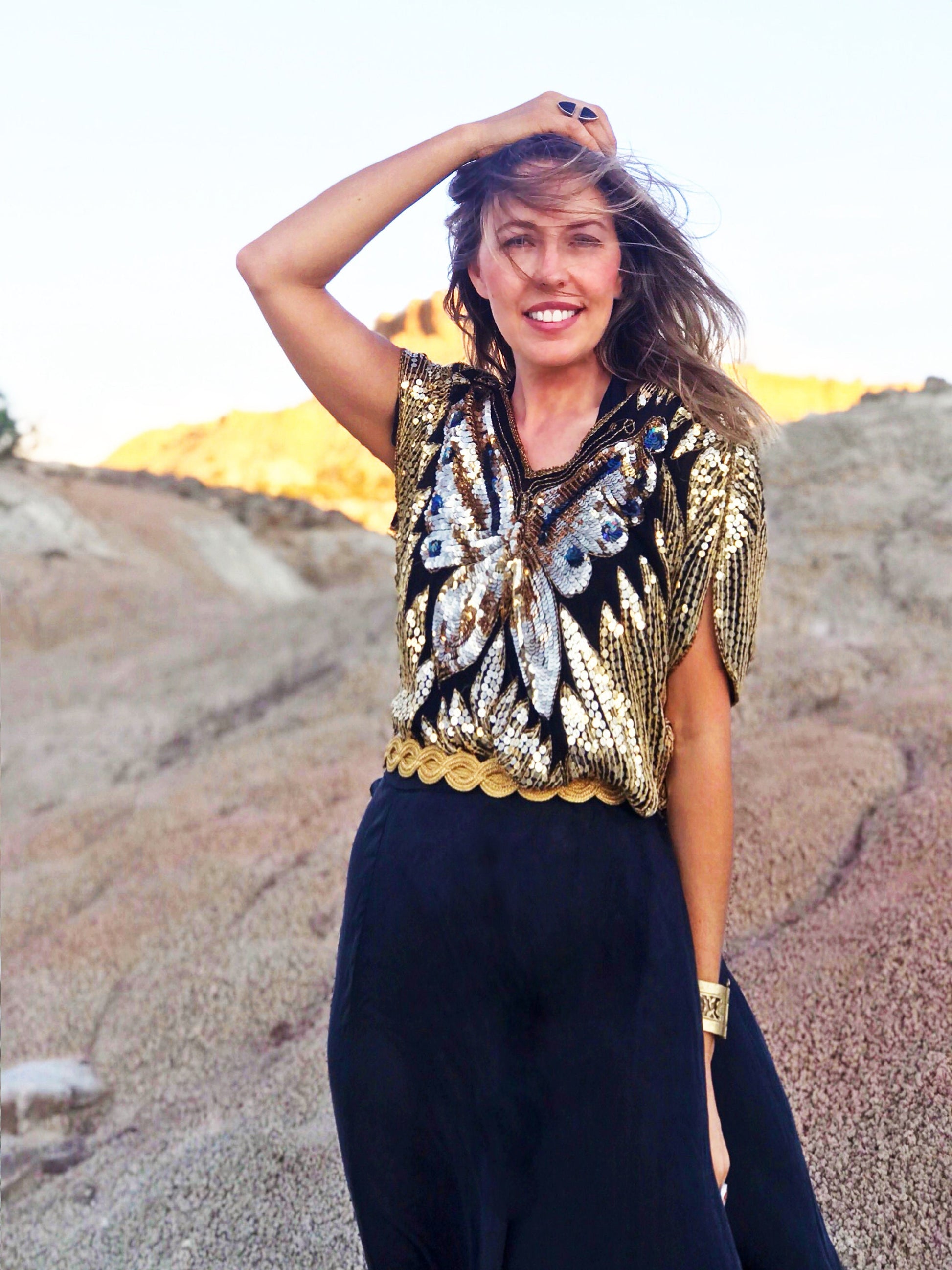 Vintage 1970s Sequins Top BUTTERFLY Blouse DISCO Cropped GOLD Batwing Shirt