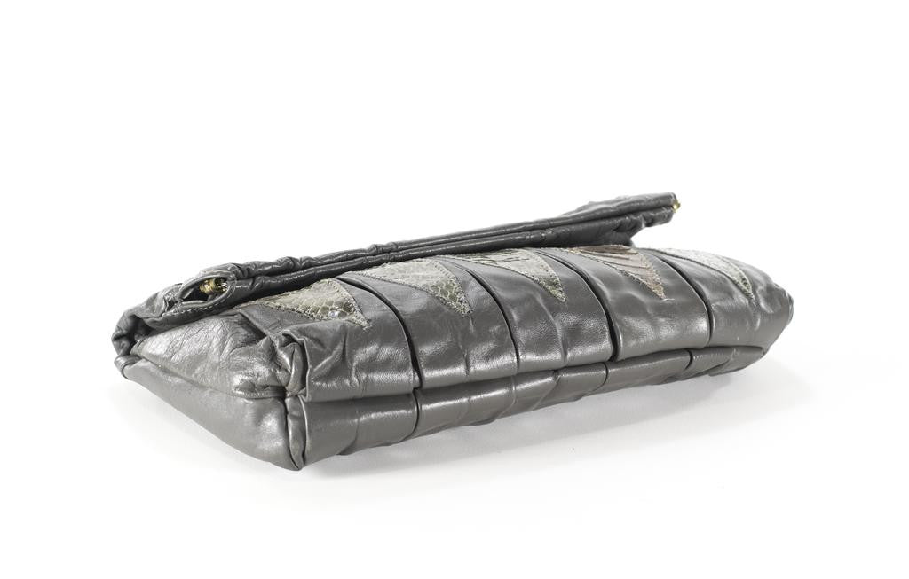 Vintage Gray Leather Bag Convertible Crossbody Clutch Purse Snakeskin Satchel
