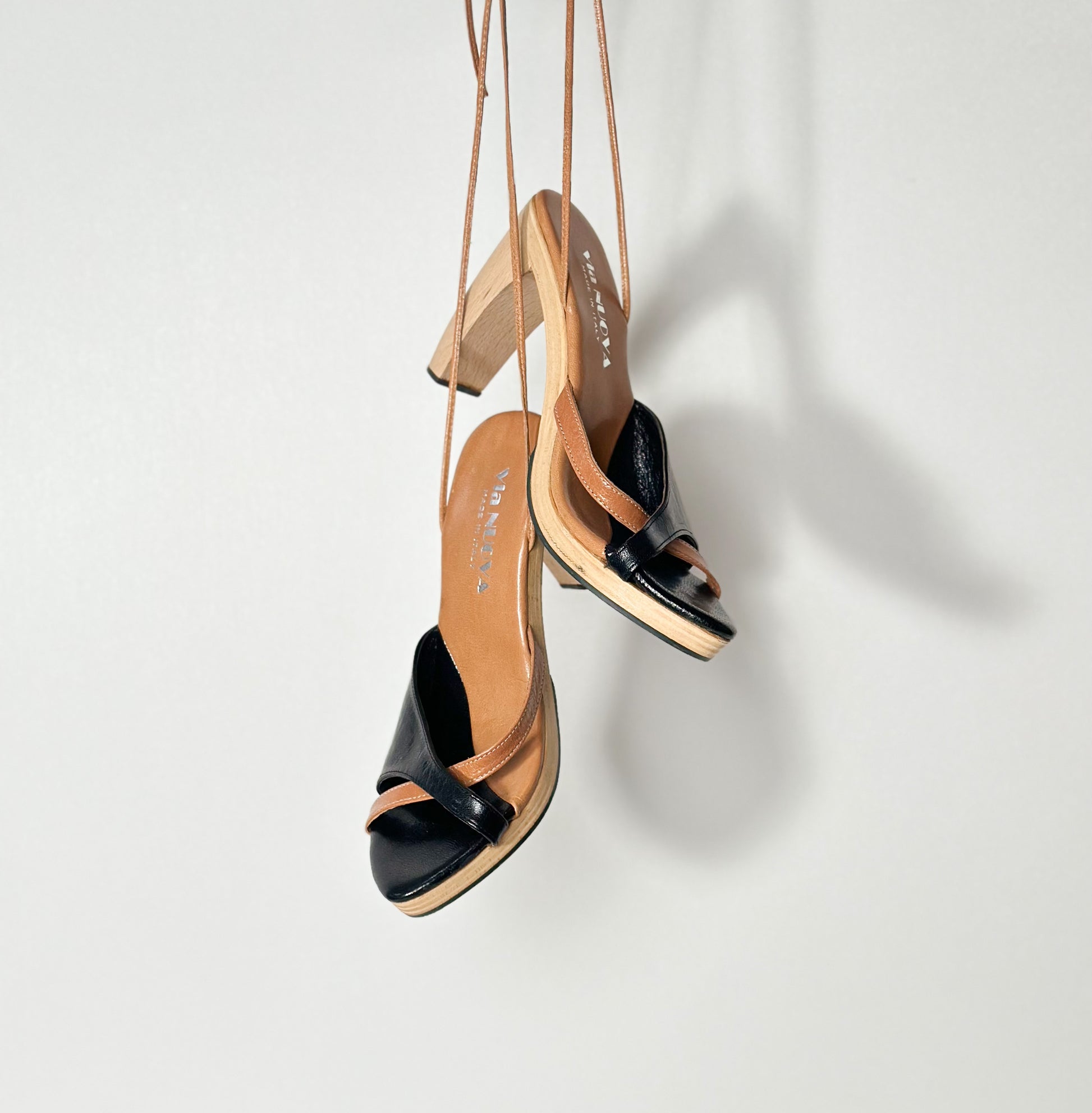 vintage leather heels made in ITALY. With wood heel and leather lace up details.