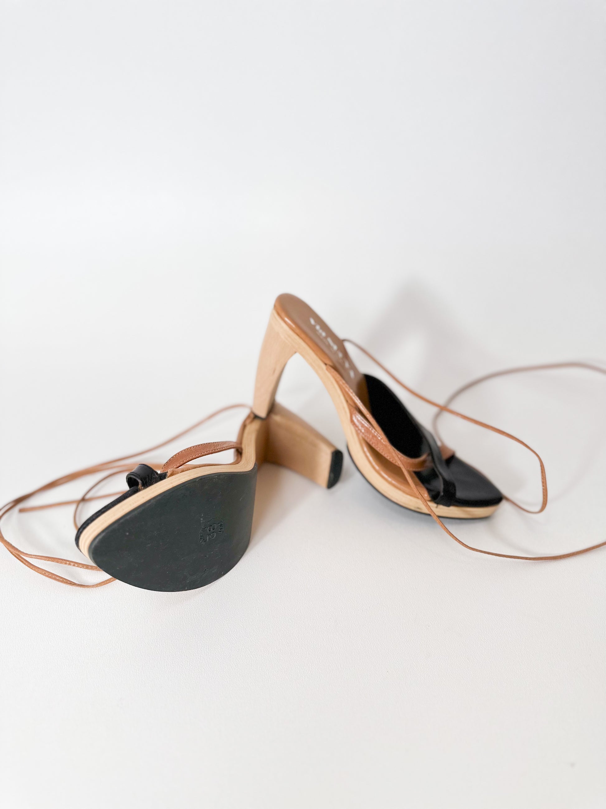 Vintage Leather Sandals Lace Up Wood Heels Made in ITALY Size 8